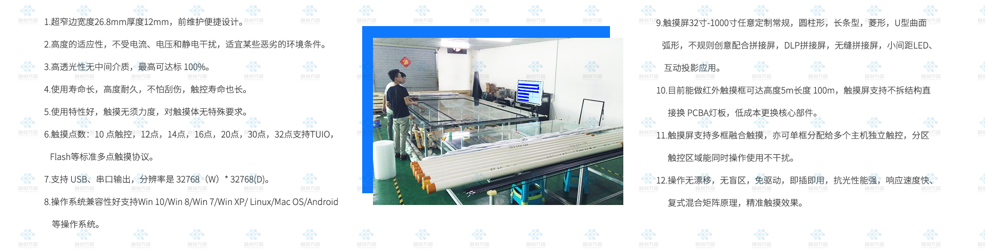 融創(chuàng)方圓55寸2×2拼接觸摸屏入駐深圳某產(chǎn)業(yè)園大廳主要用來可視化數(shù)據(jù)集中顯示互動(dòng)觸摸屏需求。 55寸2×2拼接觸摸屏對角線為110寸拼接大顯示觸摸屏,...